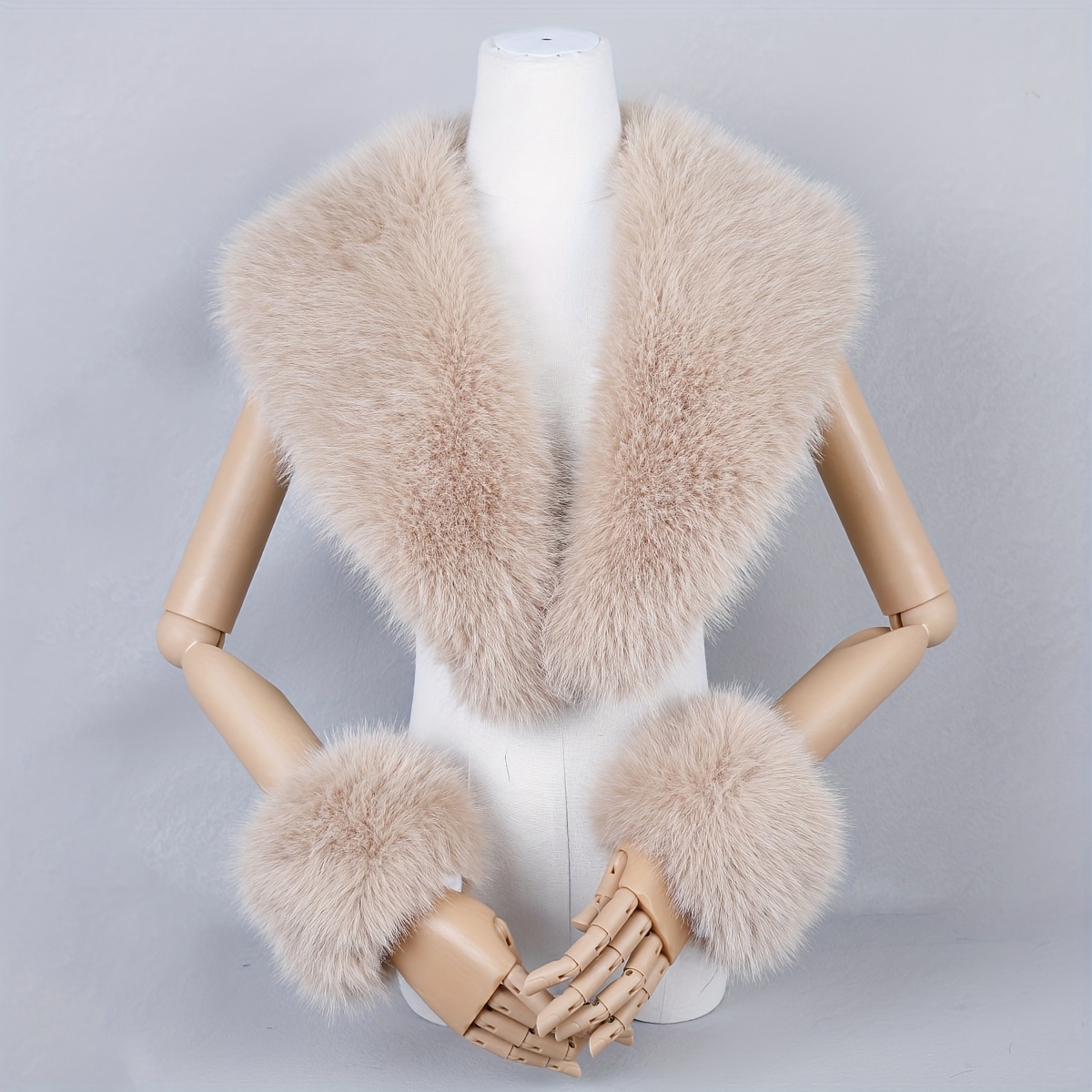 TEMU 3pcs 세트, 패셔너블하고 트렌디한 칼라 1개와 따뜻하고 편안하며 피부 친화적인 슬리브 세트 2개 조합, 여성용 페이크 숄 및 커프스, 따뜻하고 추위를 방지하는 가을/겨울 의류 매칭, 크리스마스, 할로윈에 적합