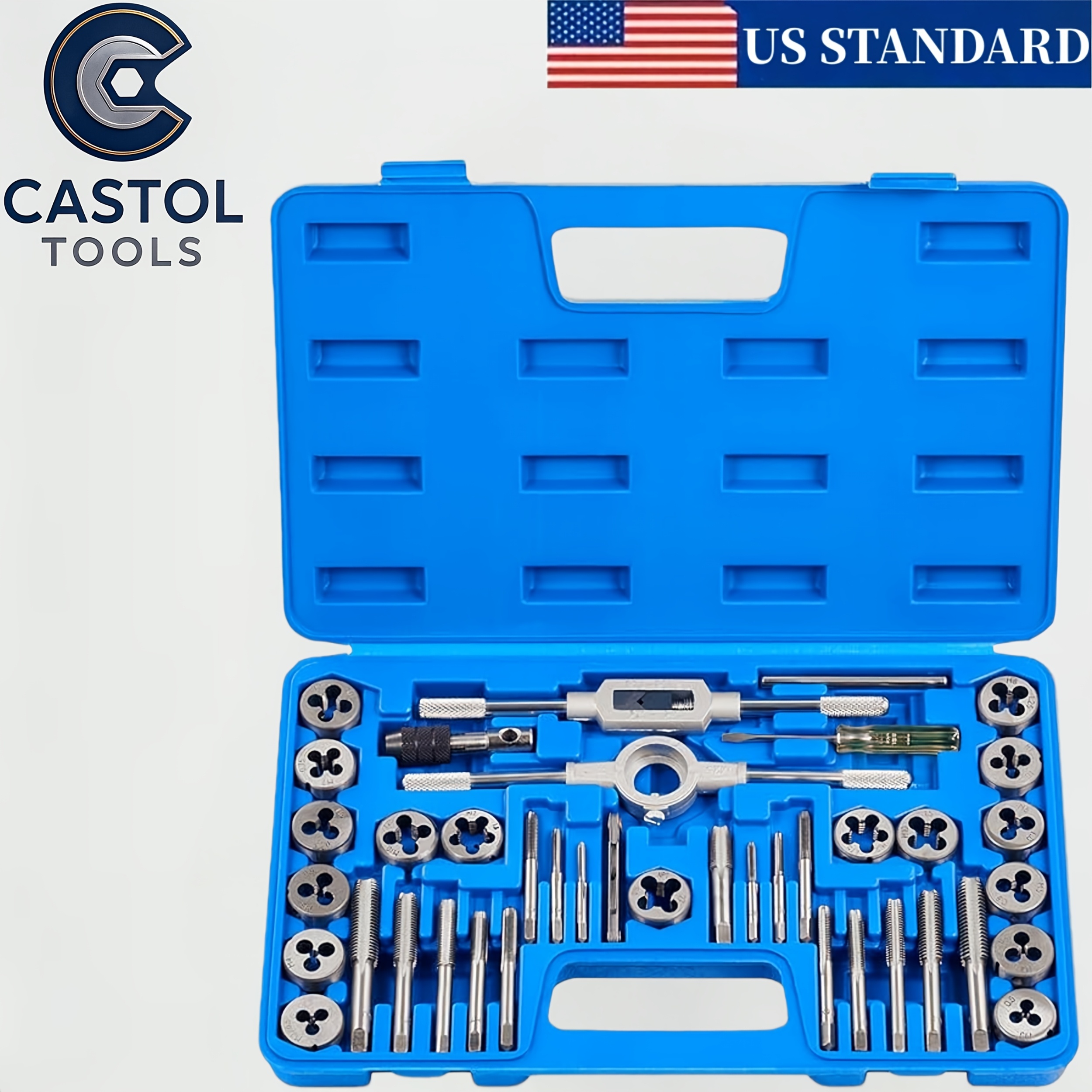 TEMU 40개 세트 SAE 및 미터법 사이즈 탭 및 다이 세트, 내부 및 외부 나사용 미터법 및 표준 탭 및 다이 공구 세트