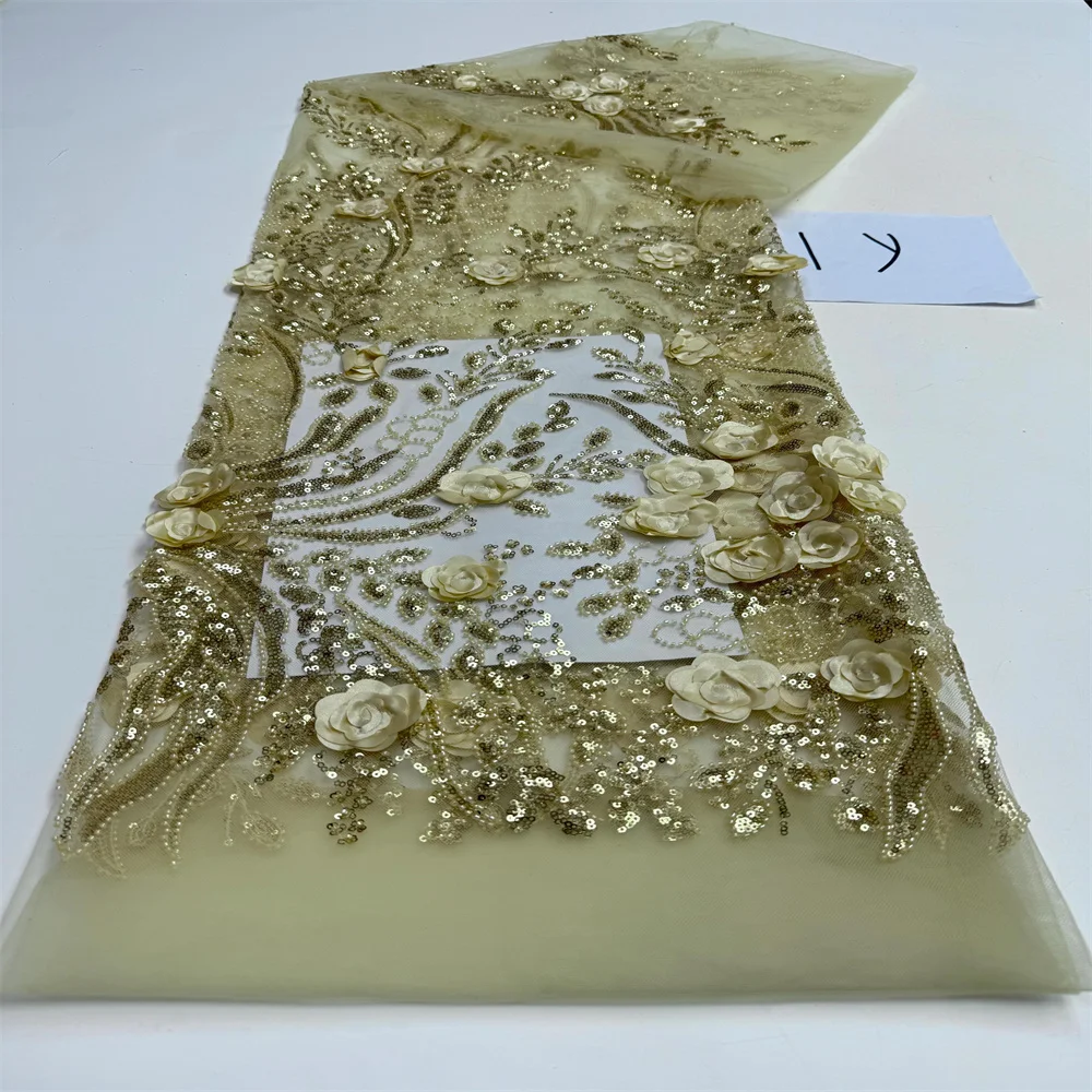 럭셔리 아프리카 레이스 원단 고품질 스팽글 비즈 레이스 원단 나이지리아 웨딩용 프랑스 튤 레이스 원단 1야드