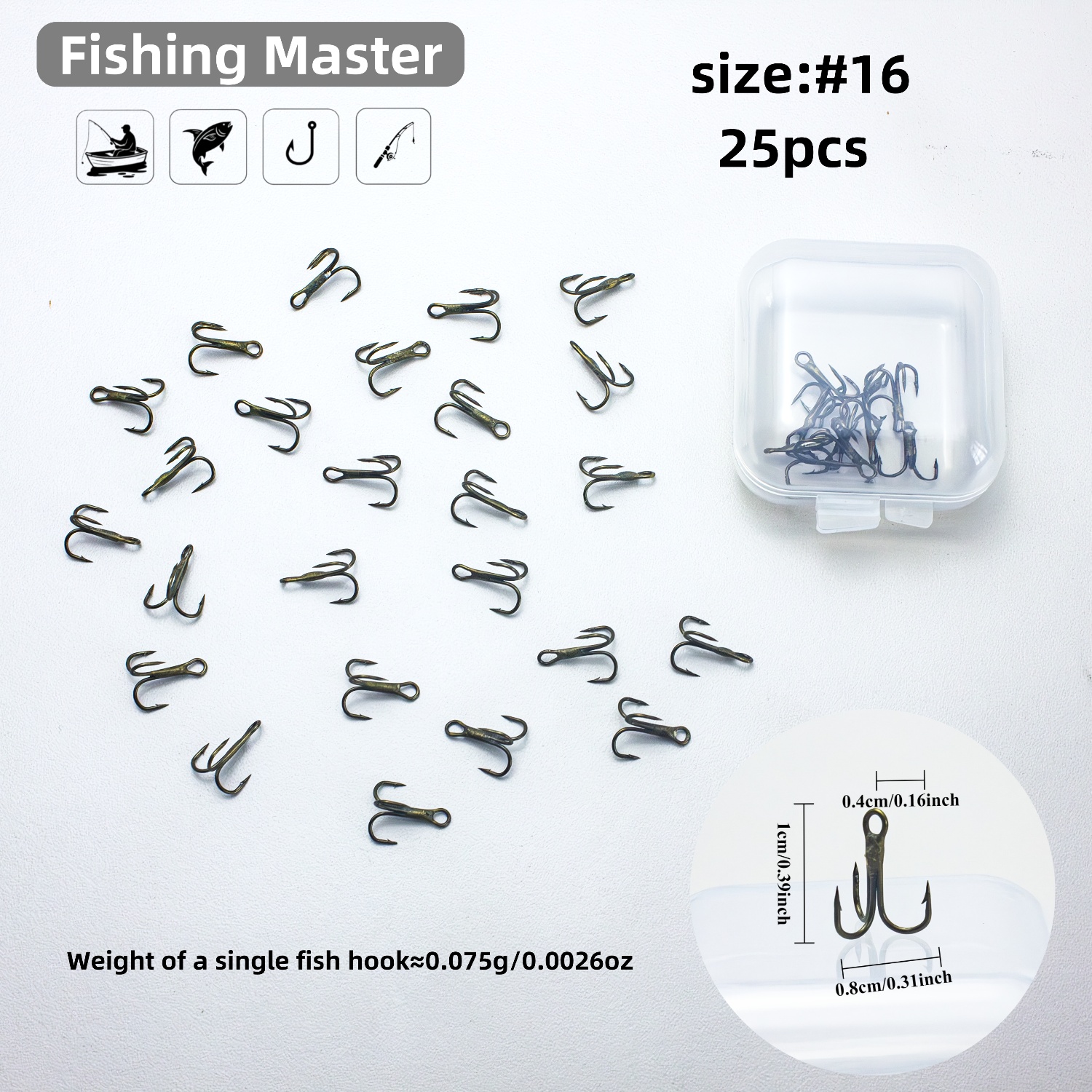 TEMU 25개 초소형 삼단 다크 브라운 강화 미니 낚시 바늘, 고탄소강 삼중 바늘, 소형 물고기 바늘, 다양한 수역 소형 물고기 낚시, 남성용 휴일 선물/아버지의 날/발렌타인데이에 적합