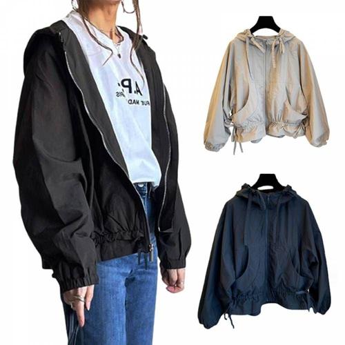 숏 점퍼 가을 바람막이 오버핏 야상 자켓 모자 간절기 WF0D6BC