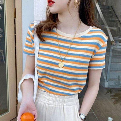 [모노무드]LMO 세로줄여성 숏티 탑 핏감좋은 우먼 썸머 숏슬리브 심플