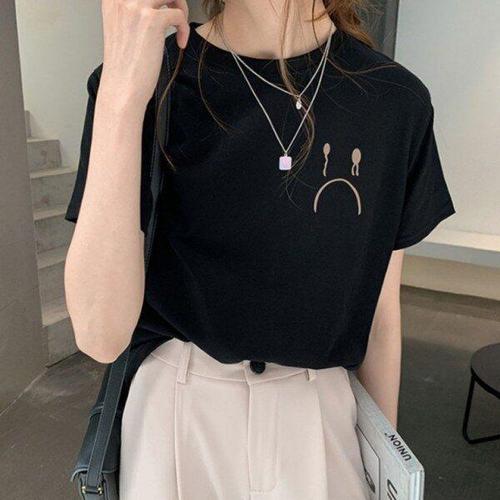 [모노무드]LMO 크라잉 걸 숏티 티탑 원형넥 우먼 S/S 하프슬리브베이직