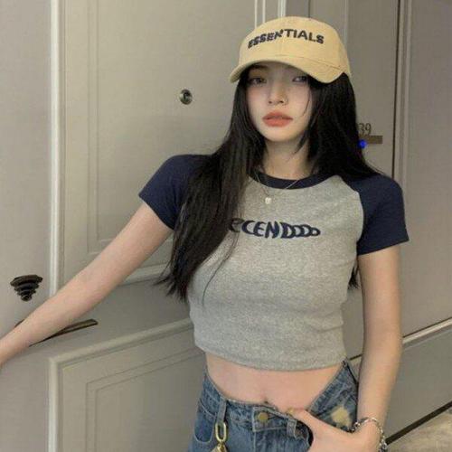 [모노무드]LMO 하트 여성용 숏탑 하프티 레터링 여성용하절기 숏티 데일리 탑
