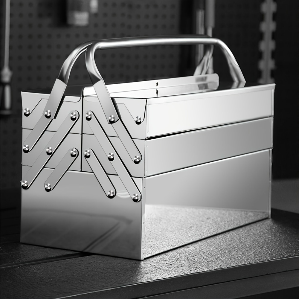 TEMU 휴대용 캔틸리버 도구 상자 - 내구성 400 시리즈 스테인레스 스틸, 홈 및 자동차 수리용 접이식 금속 도구 상자, 야외 활동에 이상적, 자동차 수리 필수품 | 소형 디자인 | 스테인레스 스틸 구조, 도구 보관 정리기, 도구 상자
