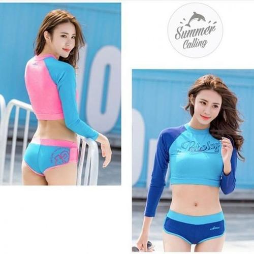 [버블라임] 여성 래쉬가드 배색 긴팔 수영복상의 F04