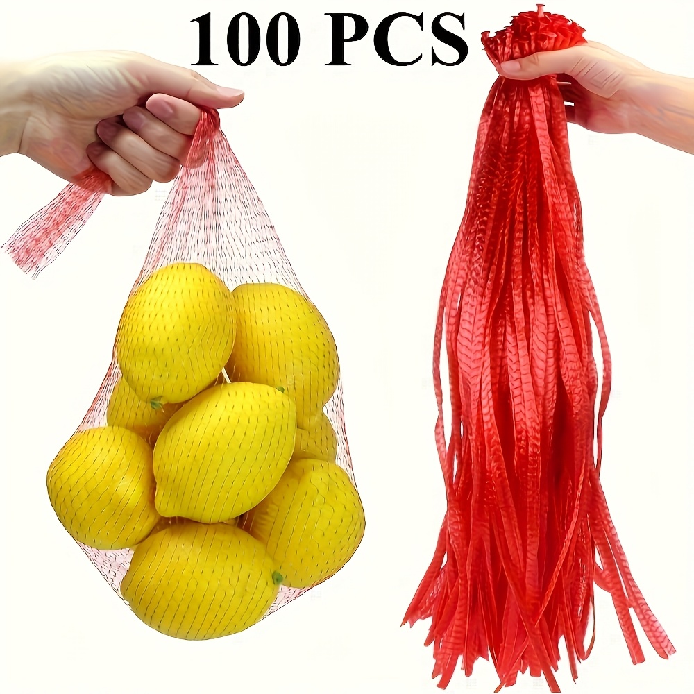 TEMU 100개 재사용 가능한 메시 농산물 가방, 60.96Cm 해산물 찜 가방 - 게, 조개, 새우, 양파, 감자, 토마토 조리 및 보관을 위한 내구성 있는 플라스틱 네트 - 과일 및 채소 포장에 적합