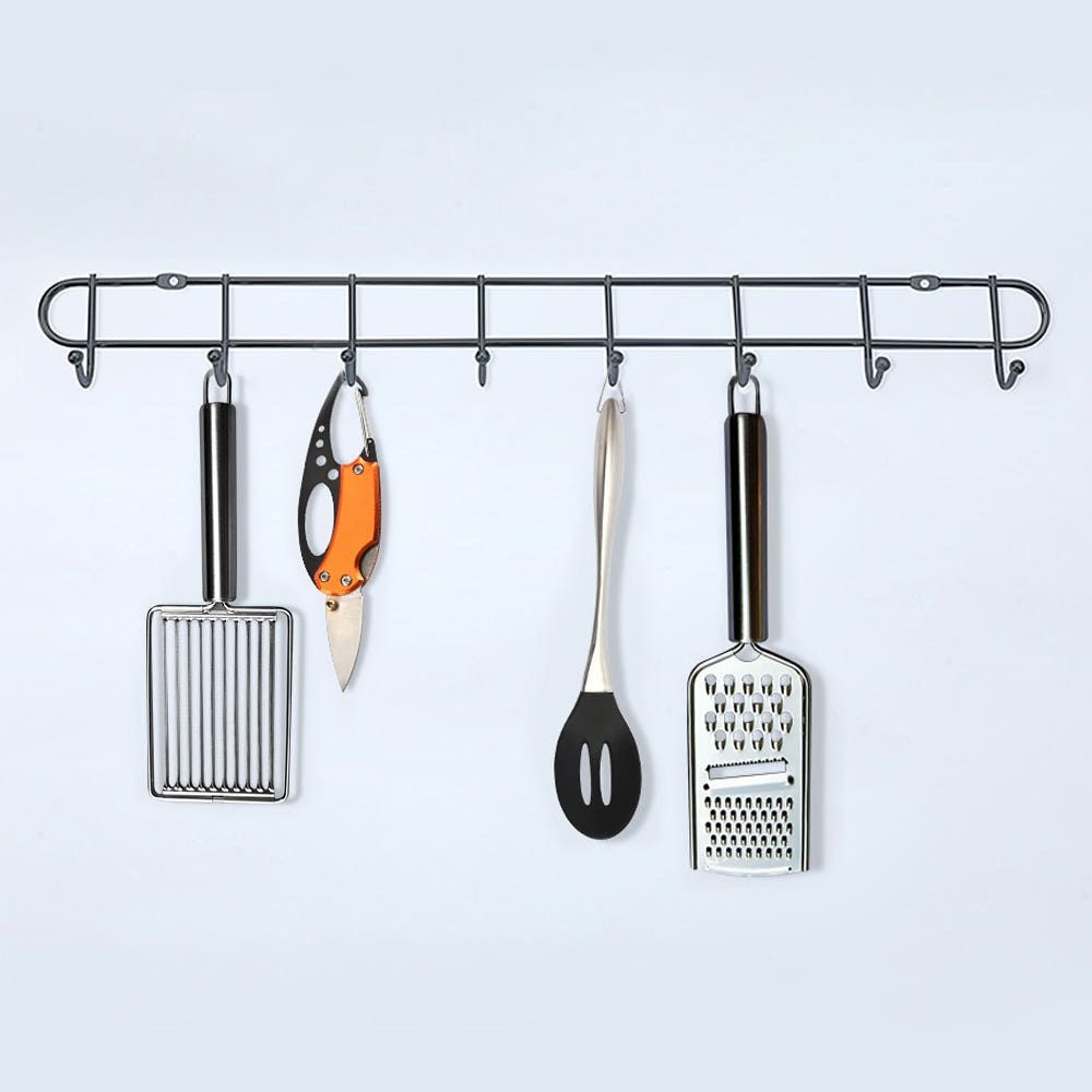 무타공 접착식 주방걸이 조리도구 걸이 거치대 주방 도구 정리 수납 블랙 8구