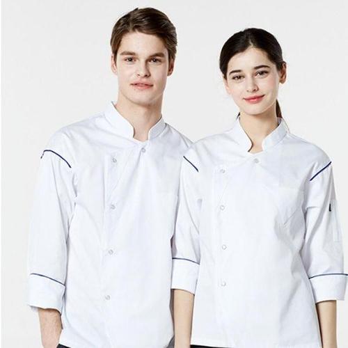 [에이치플러스몰]화이트 스탠딩카라 7부조리복 쉐프웨어 셰프복 위생복
