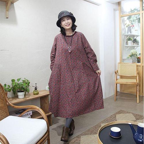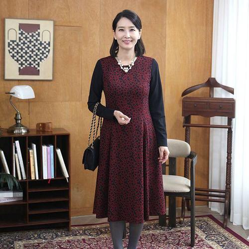 [쉬즈마담]N2745 겨울 잔꽃 셔링플레어 면본딩 원피스 엄마옷