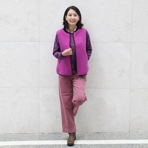 [쉬즈마담]J31739 포근 따뜻한 배색 밍크기모조끼 50대 엄마옷
