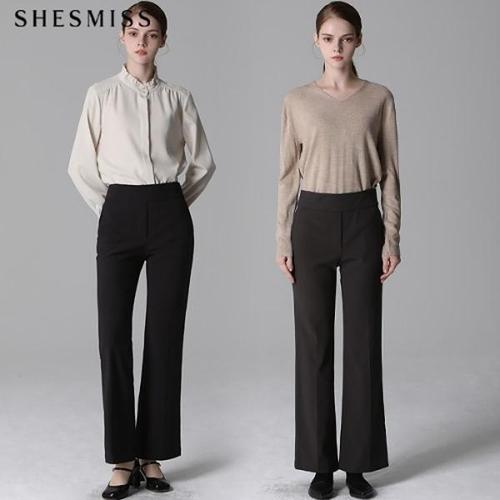 [쉬즈미스]슬림핏 백 밴딩 트임 팬츠
