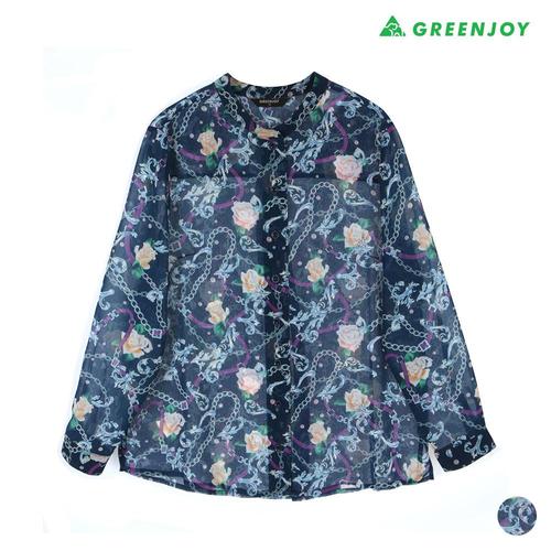 [그린조이]여성 플라워 프린트 쉬폰 남방 셔츠