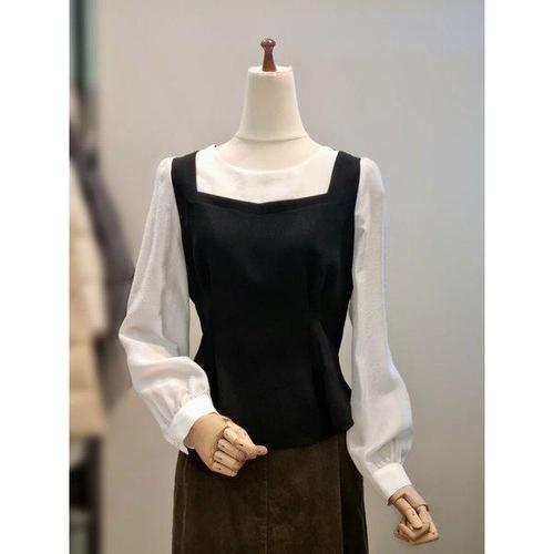 [에이치플러스몰]여름 쉬폰 여성 긴팔 롱니트 히티쟌 뷔스티에