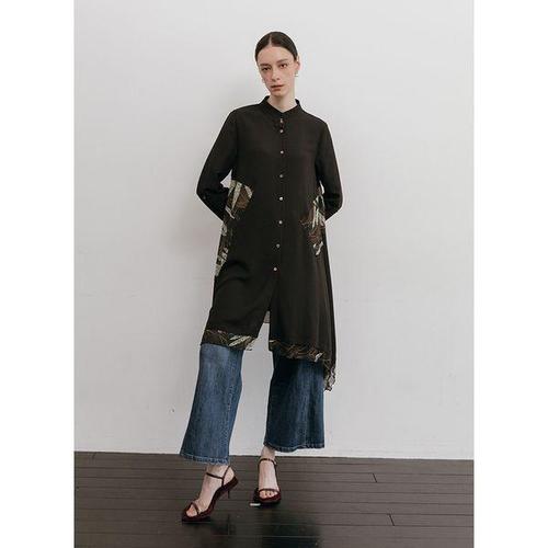 [막스까르띠지오]프린트 쉬폰 배색 롱 블라우스