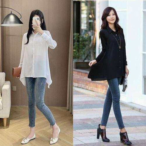 여자옷코디 쉬폰 편안한 롱셔츠 셔츠 여성 데이트 봄