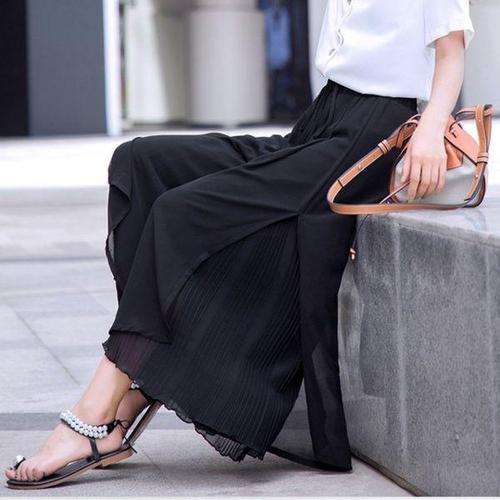 [에이치플러스몰]주름 쉬폰 와이드 치마바지