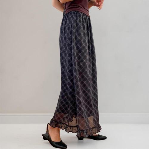 [옷자락]여성 체크 쉬폰 레이어드 롱 스커트