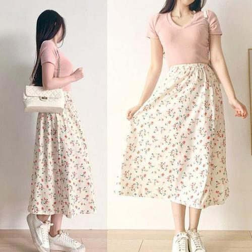 [셀러허브_여성트랜드패션]치마봄 스커트 쉬폰 여름 롱 A라인 X 꽃무늬 플라워