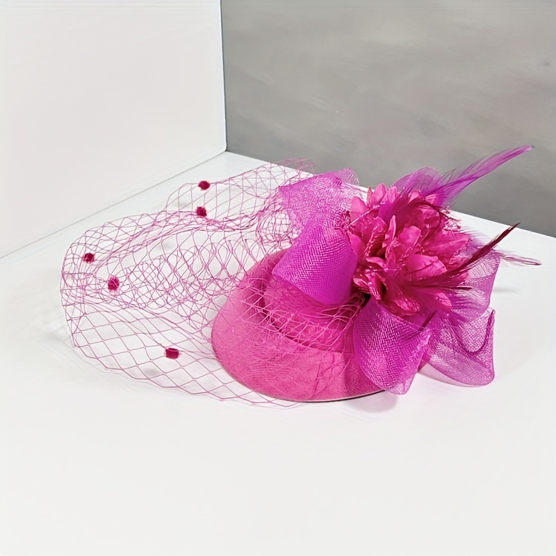 TEMU 브라이덜 블리스, 빈티지 영국 매력의 우아한 프렌치 스타일 메쉬 패시네이터 모자 - 결혼식 및 이브닝 가운에 완벽, 가벼운 폴리에스테르, 손세탁 가능