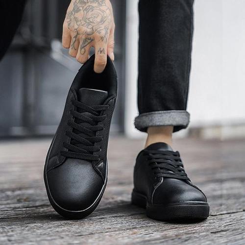 [라일리] Rly 남자 올블랙 스니커즈 로우탑 캐주얼 가죽 운동화