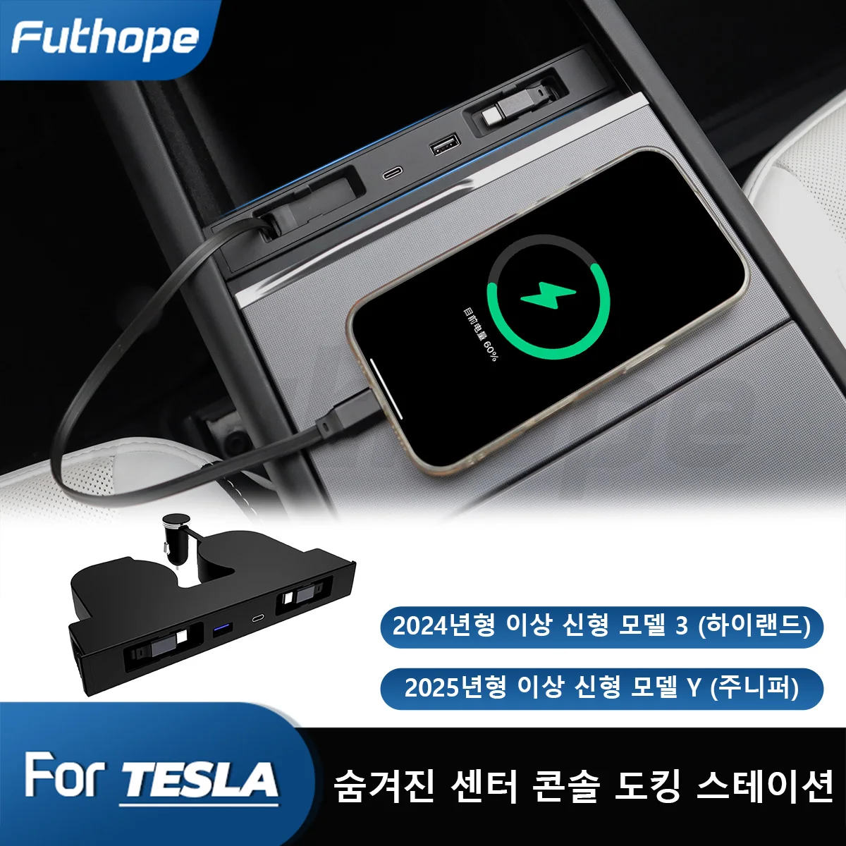 테슬라 새로운 모델 Y 주니퍼 고원 망원경 Futhope 숨겨진 중앙 콘솔 도킹 스테이션 충전 허브