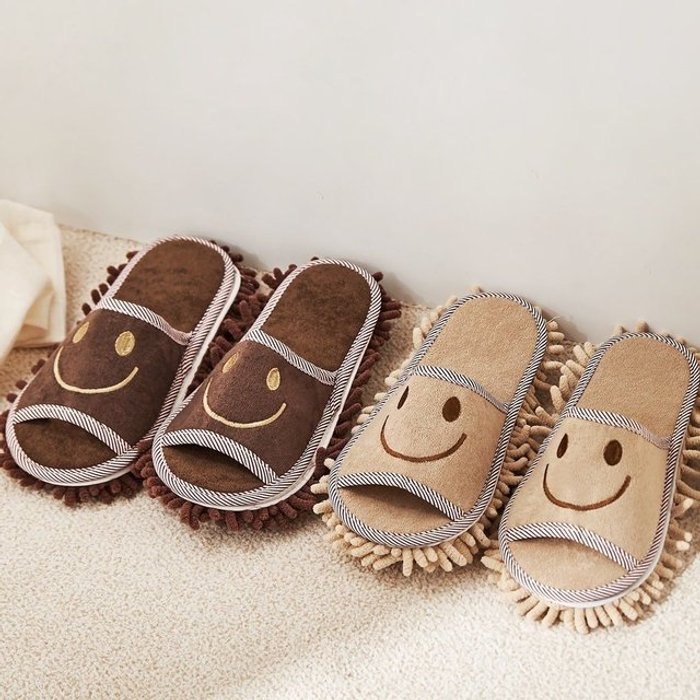 슈퍼리치 2켤레 1세트 스마일 청소 슬리퍼 실내화 가정용 걸레 바닥 극세사 주부 다용도 집 청소용 거실용 발걸레 청소화 탈부착 세트 층간소음