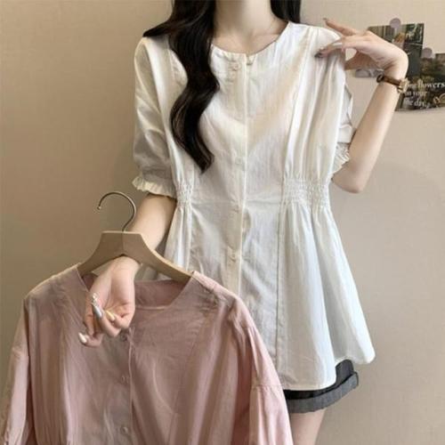[다잇템]여자 여름 라운드 스모크 밴딩 청순 블라우스