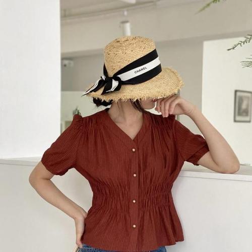 [다잇템]여자 여름 브이넥 스모크밴딩 셔링 블라우스