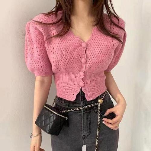 여자 데일리 벌룬소매 스모크 반팔 블라우스 SDW-BLH-SNF1002243