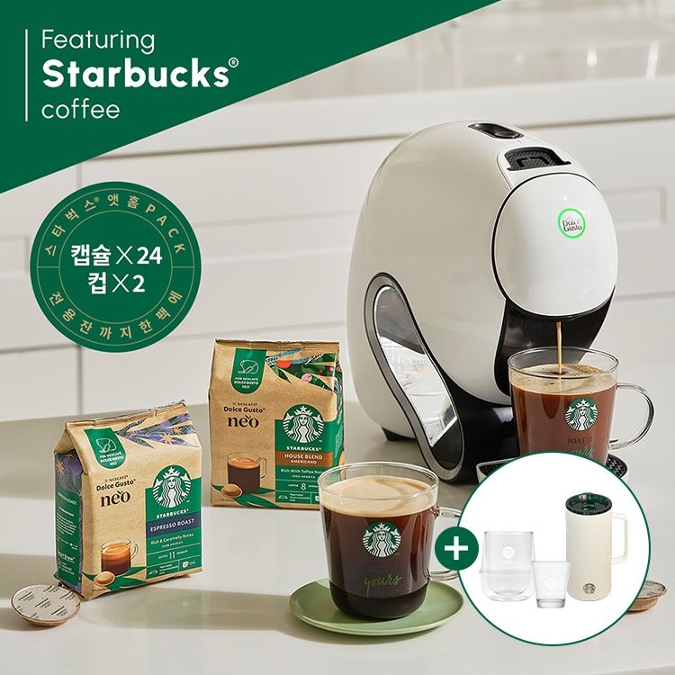 [텀블러] NEW 돌체구스토 네오 스타벅스 앳홈 팩 캡슐 커피머신(캡슐2box + 머그2개 포함)(+ 더블 월 글라스 컵 + 미르 텀블러)