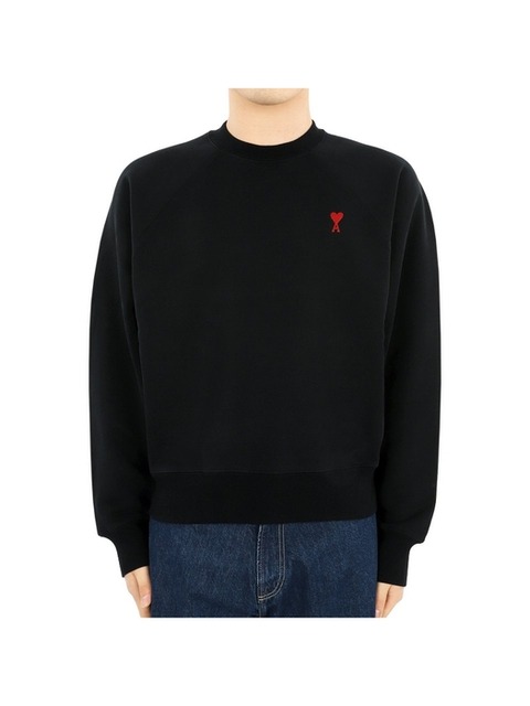 [아미] 아미 공용 스몰 하트 자수 로고 맨투맨(블랙) BFUSW005 747 001