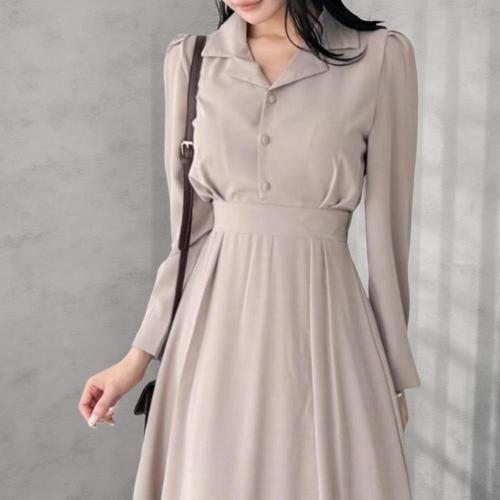[옷자락]여성 클래식 볼륨업 플레어 카라넥 롱 드레스