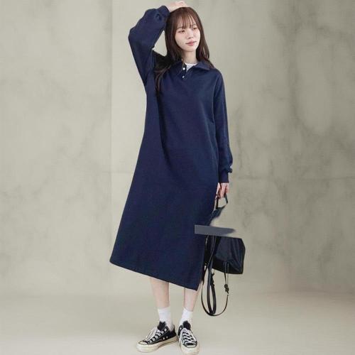 [신상오픈런]여성 기모 카라넥 롱원피스 하객룩 박시핏 심플 스타일