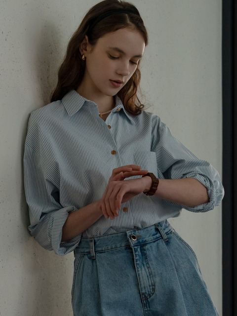 [틸아이다이] 버튼 포인트 스트라이프 셔츠 _스카이블루