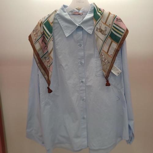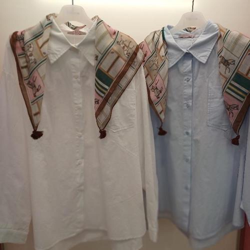 [라티움]Latium HC06 봄느낌 루즈핏 엉덩이덮는길이 셔츠 탈부착 나염스카프세트 T2613se03LB (45269329)