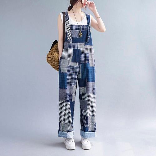 F53766 빈티지프린팅 면멜빵바지 점프슈트 와이드멜빵 WFL8D8M