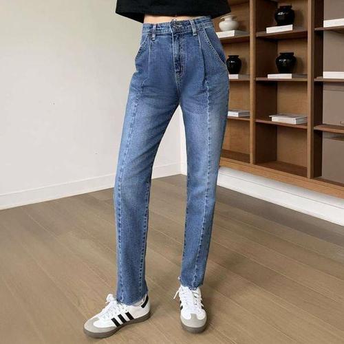 [옷자락] 여성용 슬림 핀턱 데님진 진청절개라인 코튼스키니