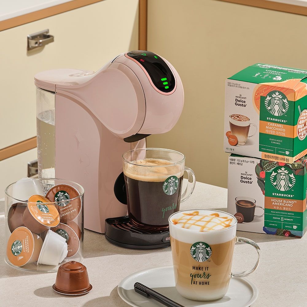 캡슐 커피머신 지니오S 쉐어 스타벅스 앳홈 팩 모카 + 르크루제 사은품 증정
