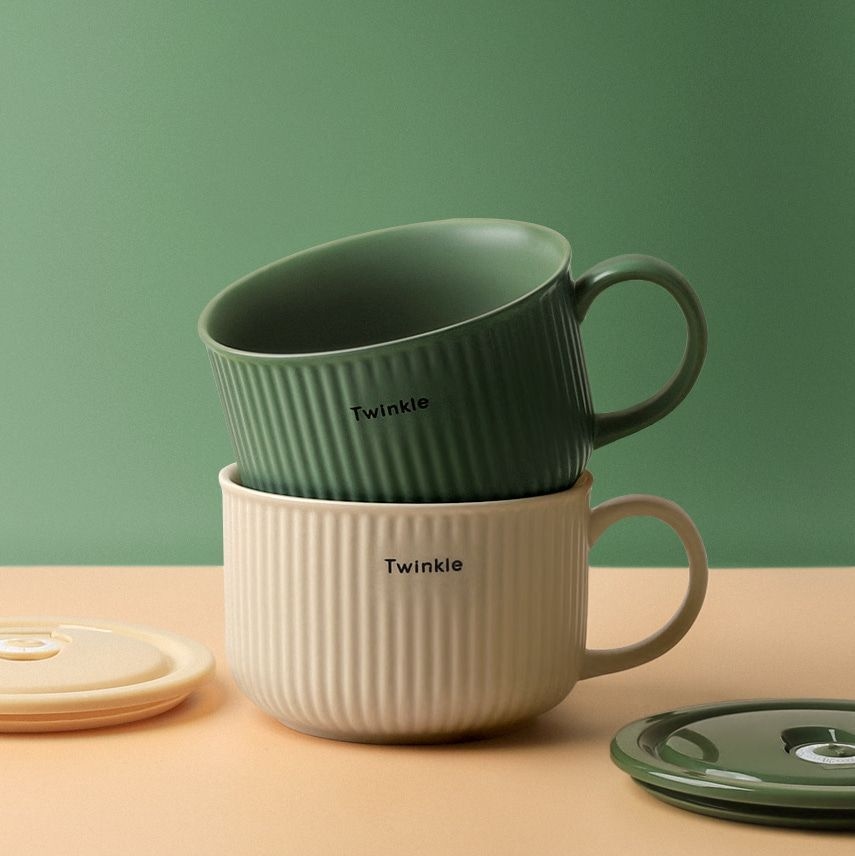 라면그릇 손잡이 면기 도자기 라면용기 세라믹 편수 2color