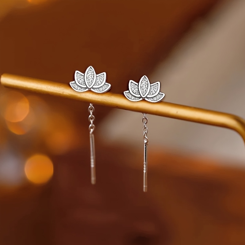 TEMU [ 귀걸이] 빈티지 감성의 연잎 태슬 귀걸이 세트 | 구리, 925 실버 포스트, 데일리 착용 및 선물용으로 이상적인 일상 귀걸이