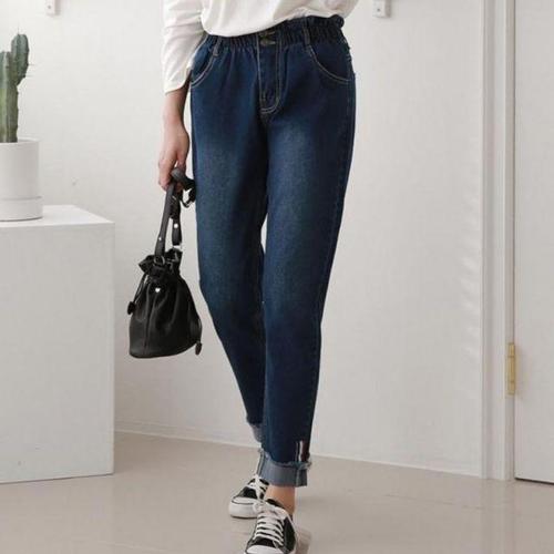 배기바지 캐주얼룩 페이크삭스 스타일 밑단 데님룩 패 WD36B03