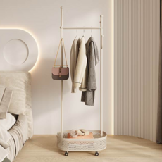 이동식 수납 스탠드 행거 옷장 바구니 다용도 미니 옷걸이 대 화이트(60cm)수납