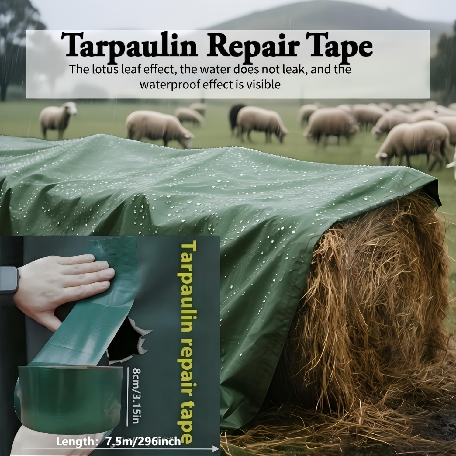 TEMU 튼튼한 와이드 테이프: 기어, RV, 트럭 타프의 빠른 수리를 위한 적합 | 찢김 방지 3.1인치 (약 8cm) × 7.5미터, 녹색 및 파란색