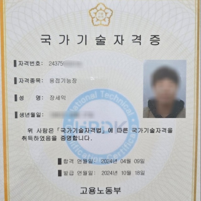 용접기능장 외 용접자격증 7개 모두 보유, 출장용접, 간단한 용접을 제공합니다!