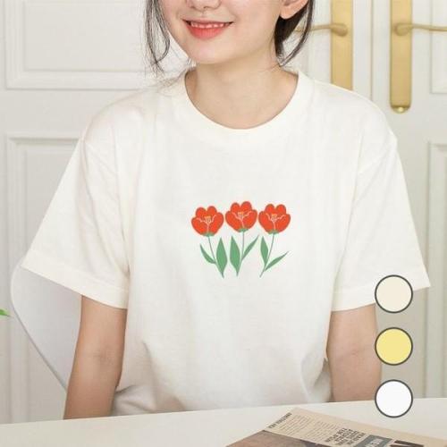 [험블스튜디오][험블스튜디오] 튤립 일러스트 홈웨어 여성 루즈핏반팔티 (6453889)