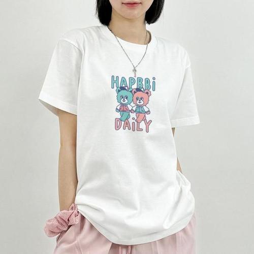 [험블스튜디오][험블스튜디오] 곰돌이 프린팅 여성 얇은 기본 면반팔 (14311636)