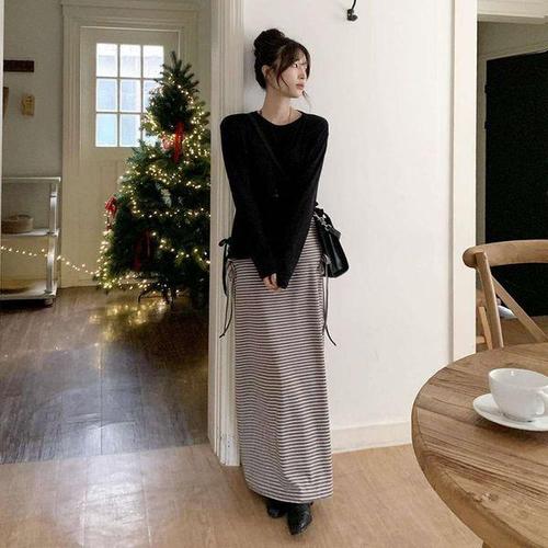슈가펀 웨니즈 스트라이프 니트 롱스커트