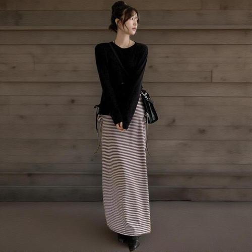 [하프클럽/]여성 일상복 캐주얼 스트라이프 롱스커트 편안한 치마