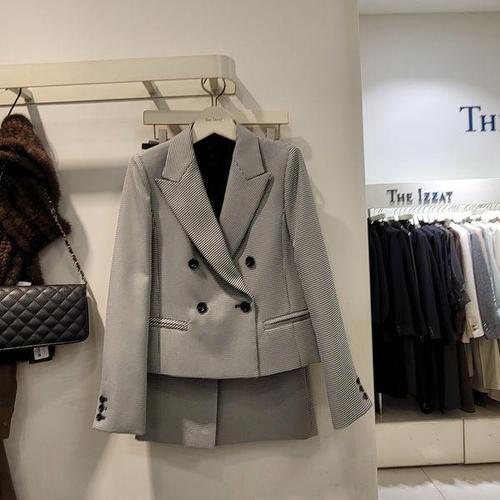 [더아이잗뉴욕]더아이잗2023봄최신상 단가라체크더불숏자켓스커트정장셋트